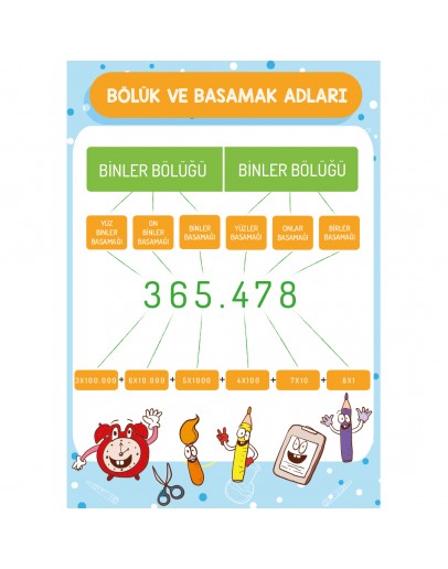 Matematik dersi bölük ve basamaklar afişi. İlkokul için özel olarak tasarlanmış eğitim ve öğretim afişi. İlkokul için tasarlanmış afiş ve posterleri güvenli bir şekilde sitemizden satın alabilirsiniz.